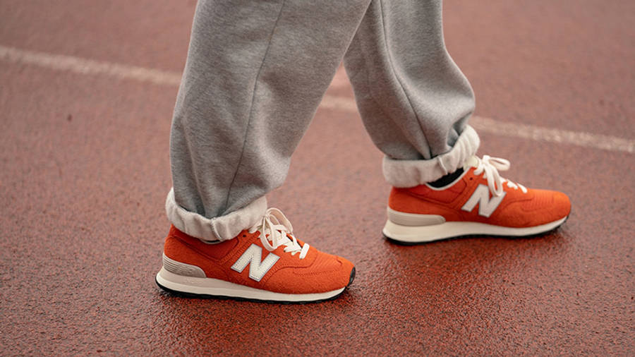 size? × New Balance 574 College Pack Orange for sale