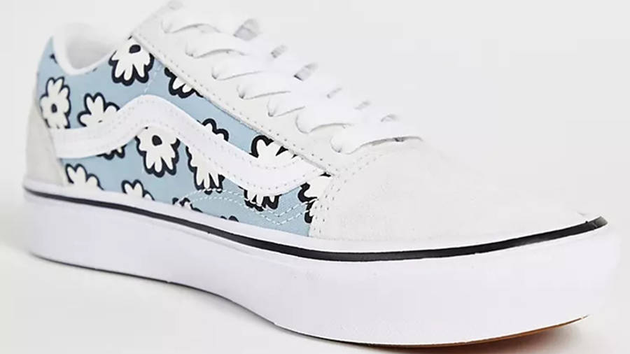 white vans with flowers for sale, Vans ComfyCush Old Skool White Flower
