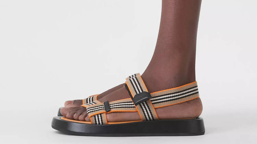 burberry icon stripe sandals for sale, Burberry Icon Stripe Sandals Deep Orange 80401871