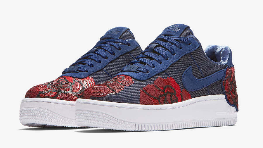 binary blue air force 1 for sale, Nike Womens Air Force 1 Upstep Floral Sequin Pack Binary Blue 898421-401