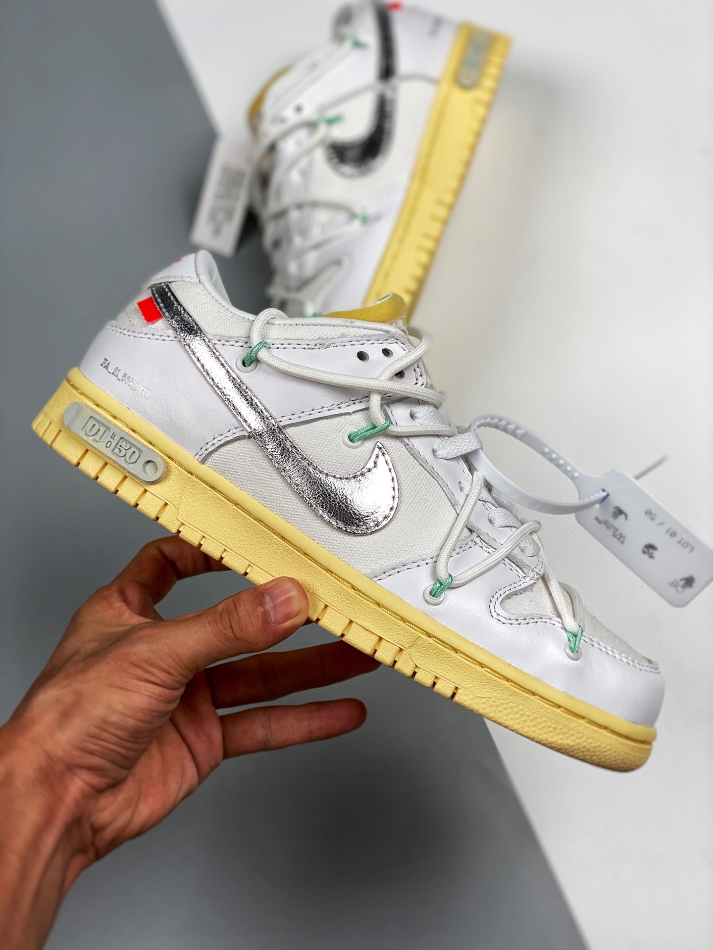 01 of 50 off white dunks for sale, Off-White x Nike Dunk Low “01 of 50” White Silver Gum