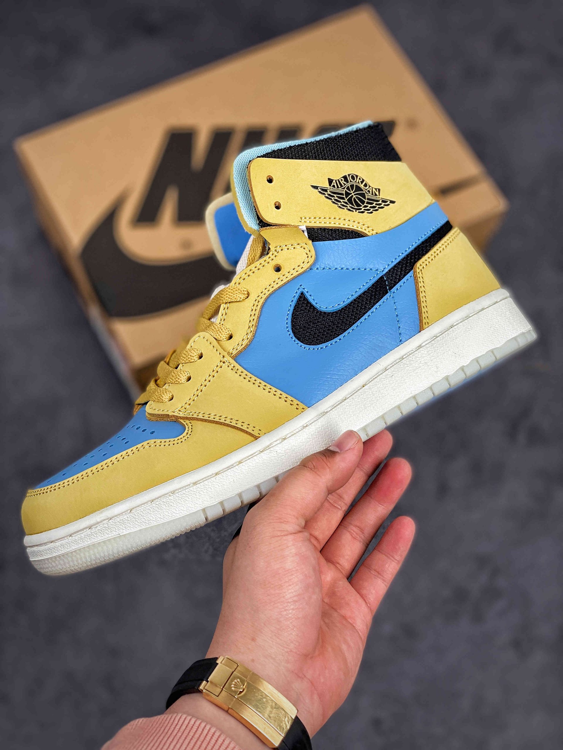 tan and blue jordan 1 for sale