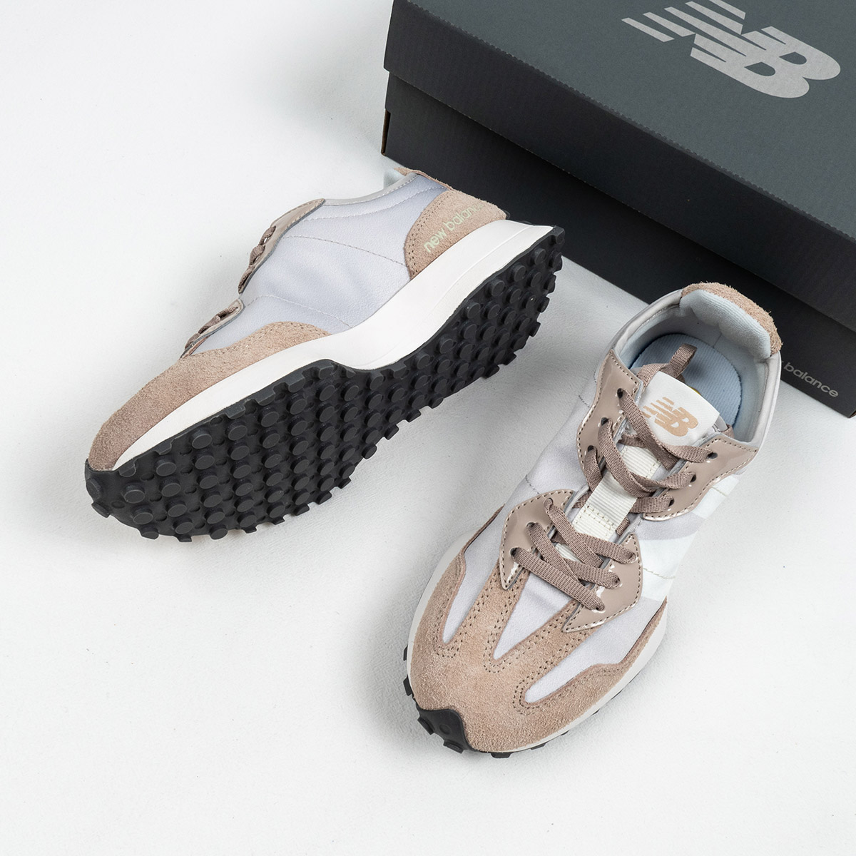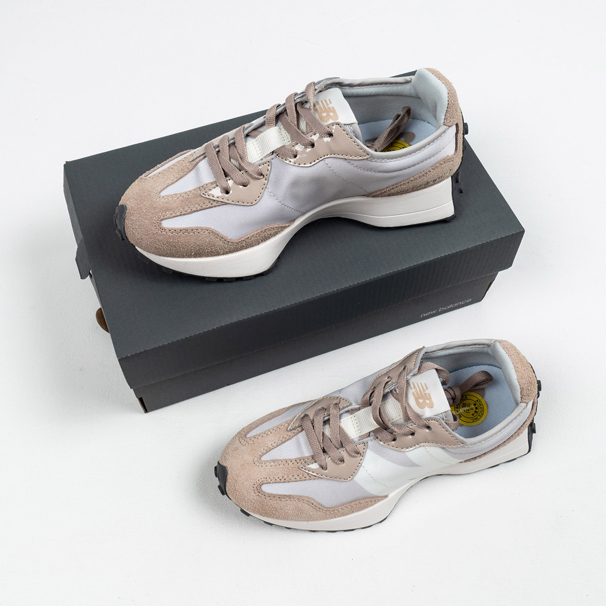 beige and white new balance 327 for sale