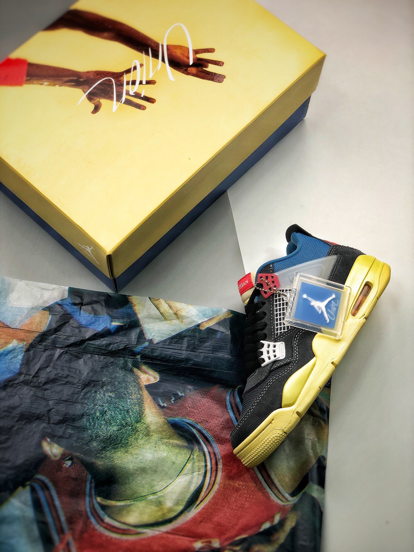Union x Air Jordan 4 Off Noir/Brigade Blue-Dark Smoke Grey-Light Fusion Red for sale, Union x Air Jordan 4 Off Noir/Brigade Blue-Dark Smoke Grey-Light Fusion Red
