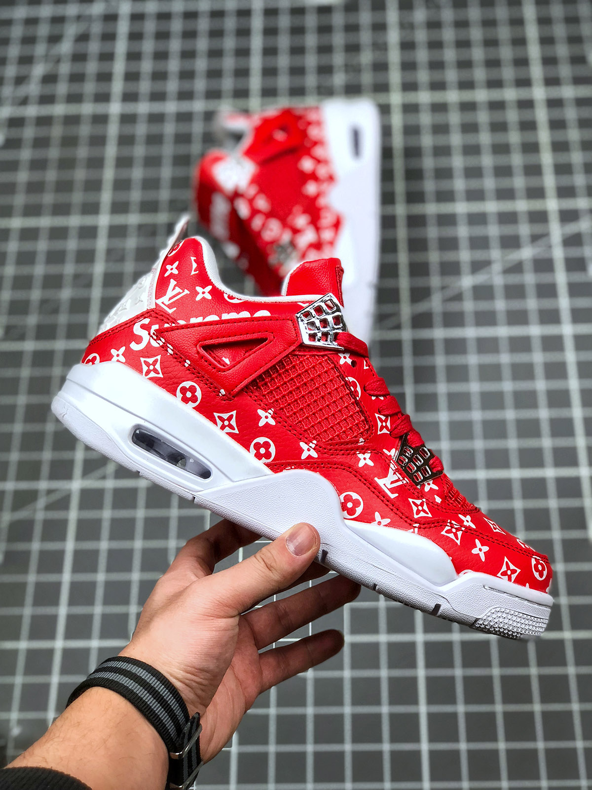 red and black jordan 4 for sale, Supreme x Air Jordan 4 Red