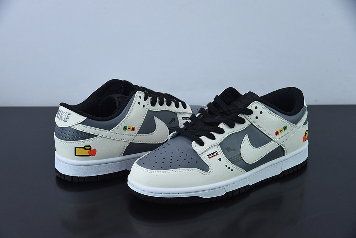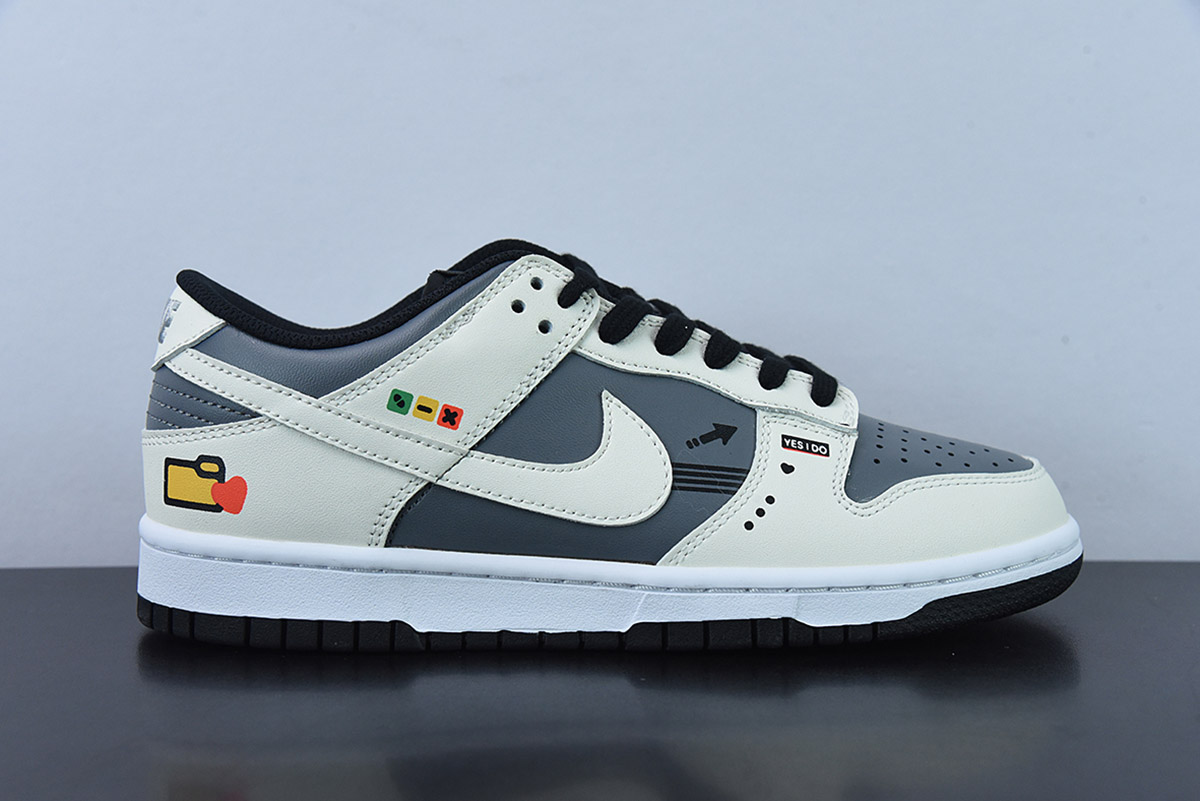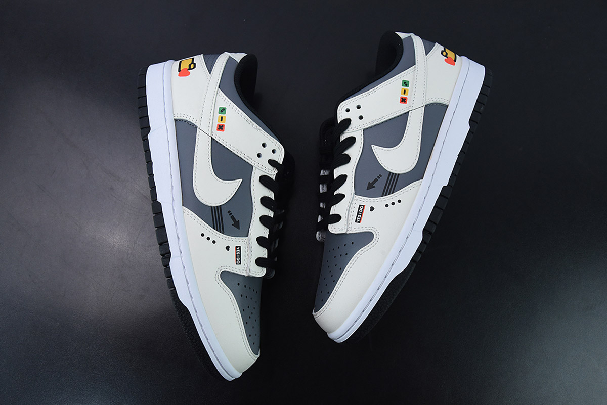 Custom Nike Dunk Low White/Dark Grey-Black for sale, Custom Nike Dunk Low White/Dark Grey-Black