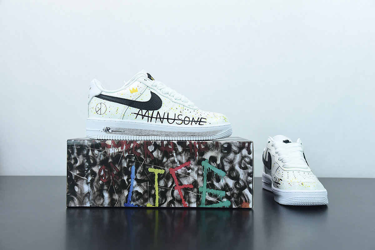 PEACEMINUSONE x Nike Air Force 1 Custom Paranoise White Black for sale, PEACEMINUSONE x Nike Air Force 1 Custom Paranoise White Black