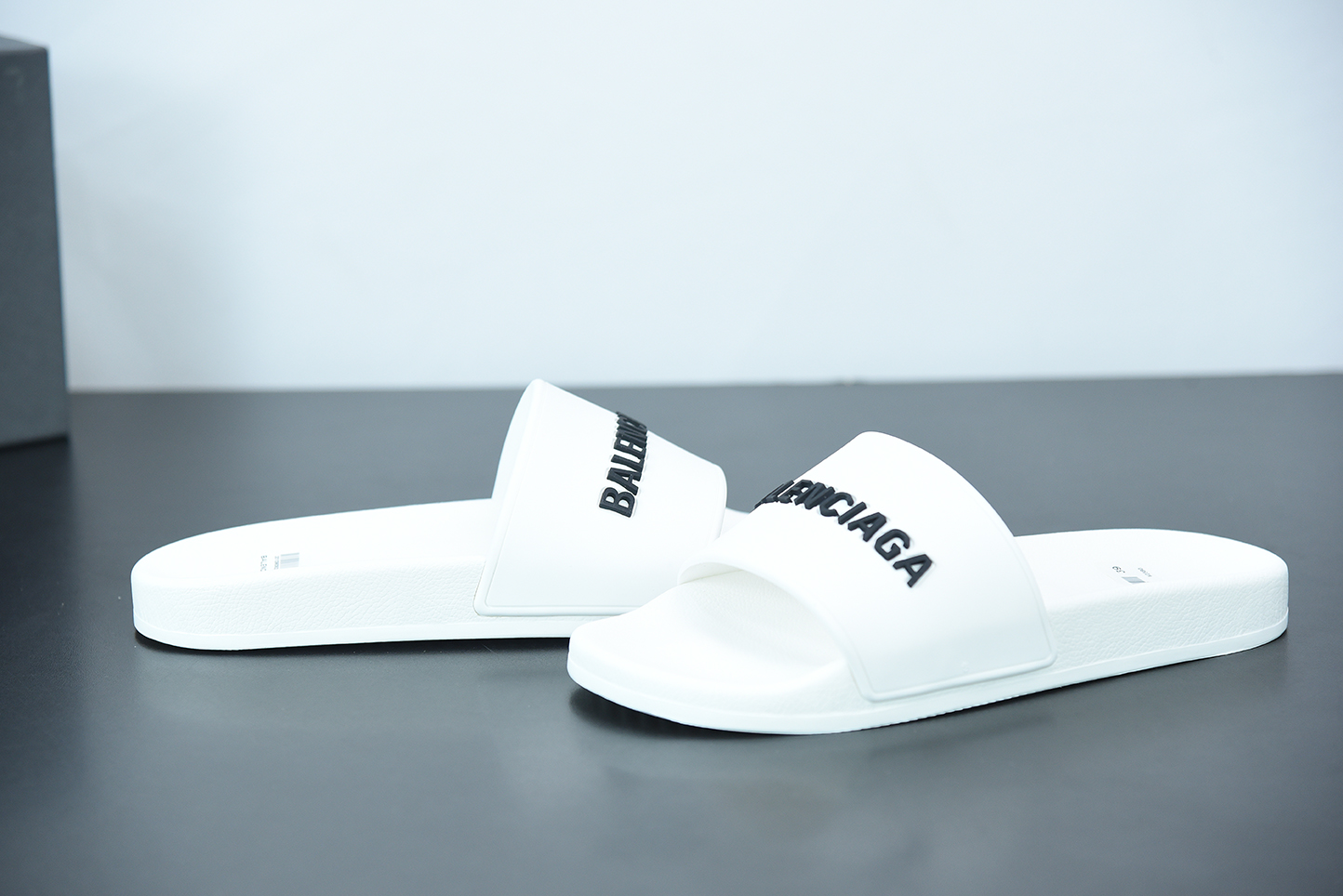 Balenciaga Logo Pool Sides Sandals White Black for sale