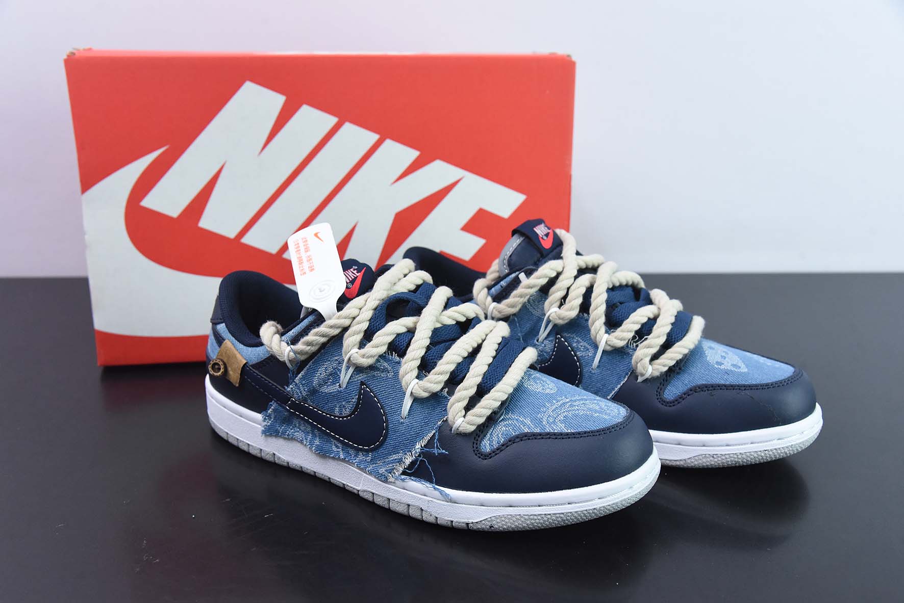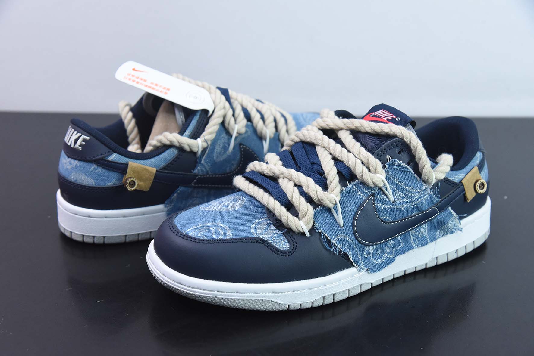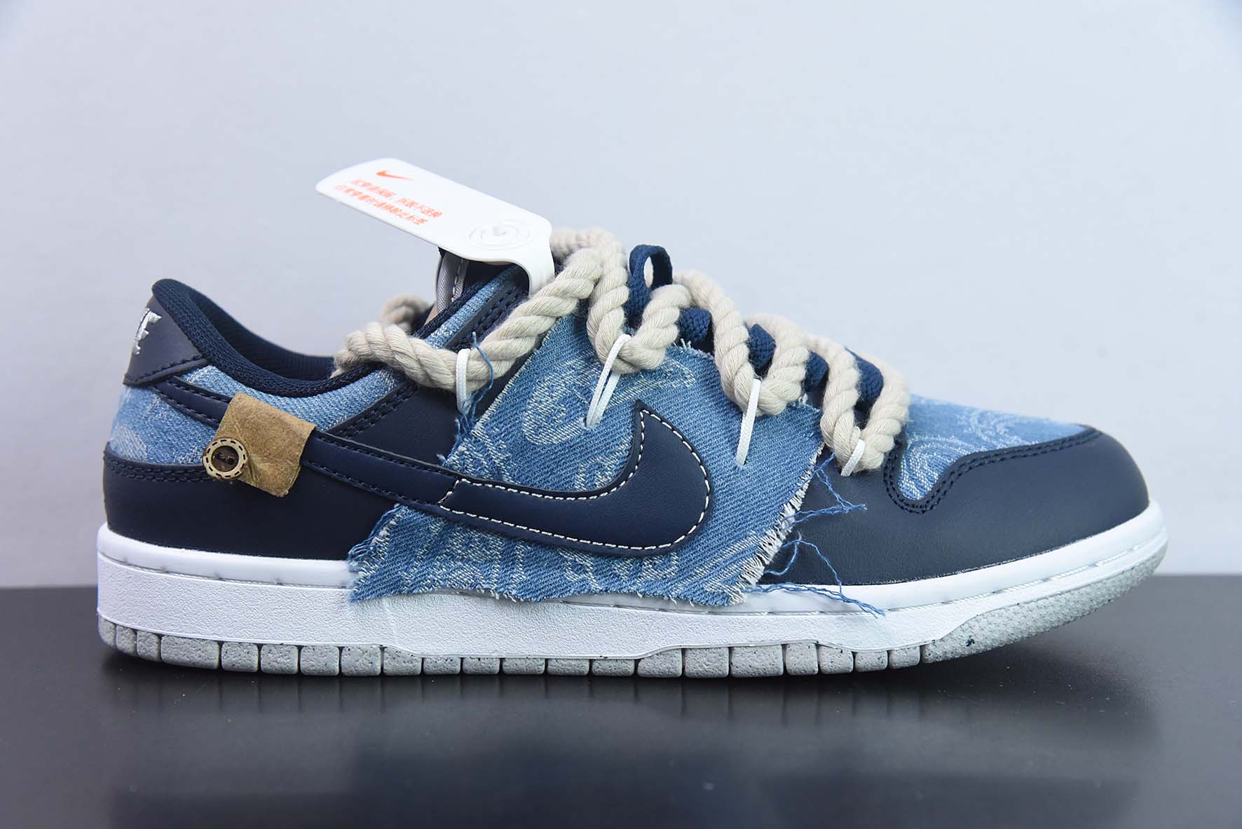 Custom Nike Dunk Low Denim Navy Blue for sale, Custom Nike Dunk Low Denim Navy Blue
