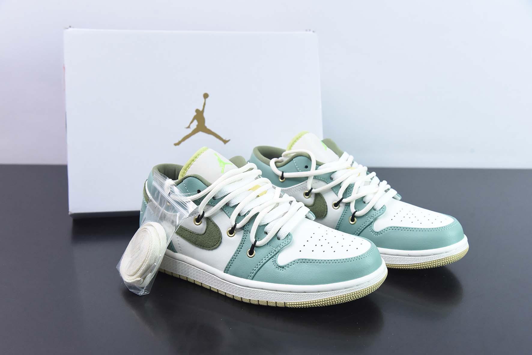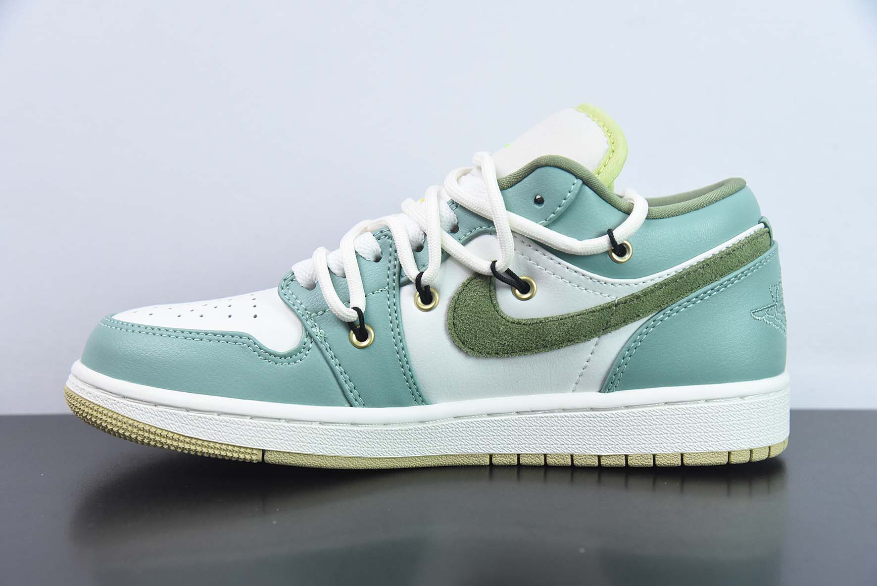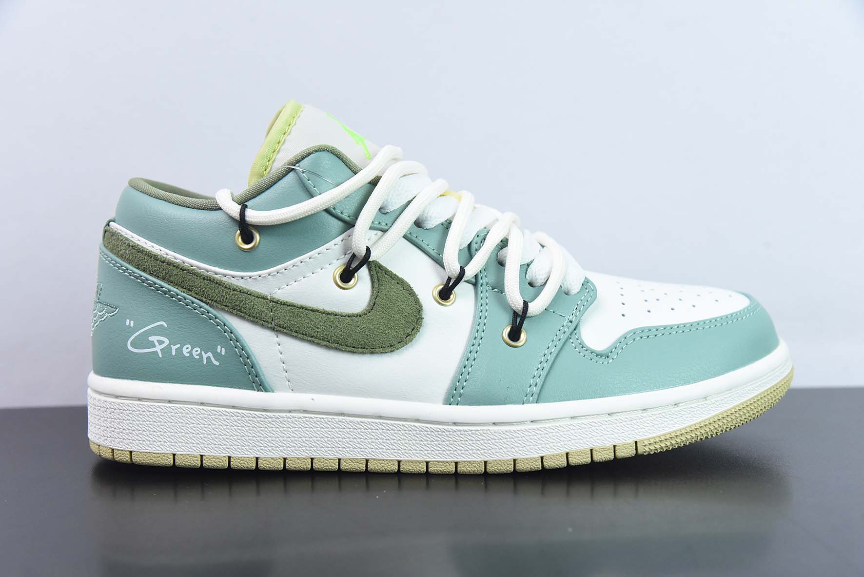 Custom Air Jordan 1 Low Sail White Oil Green for sale, Custom Air Jordan 1 Low Sail White Oil Green