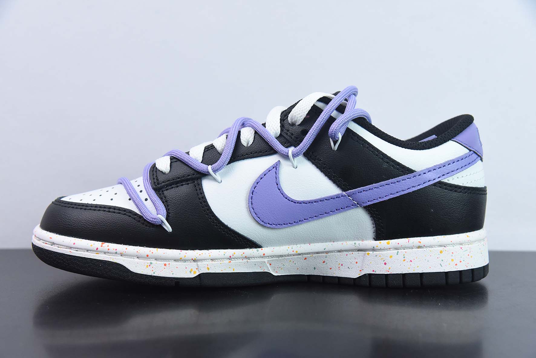 Custom Nike Dunk Low ‘Multiple Swooshes’ White/Black-Purple for sale