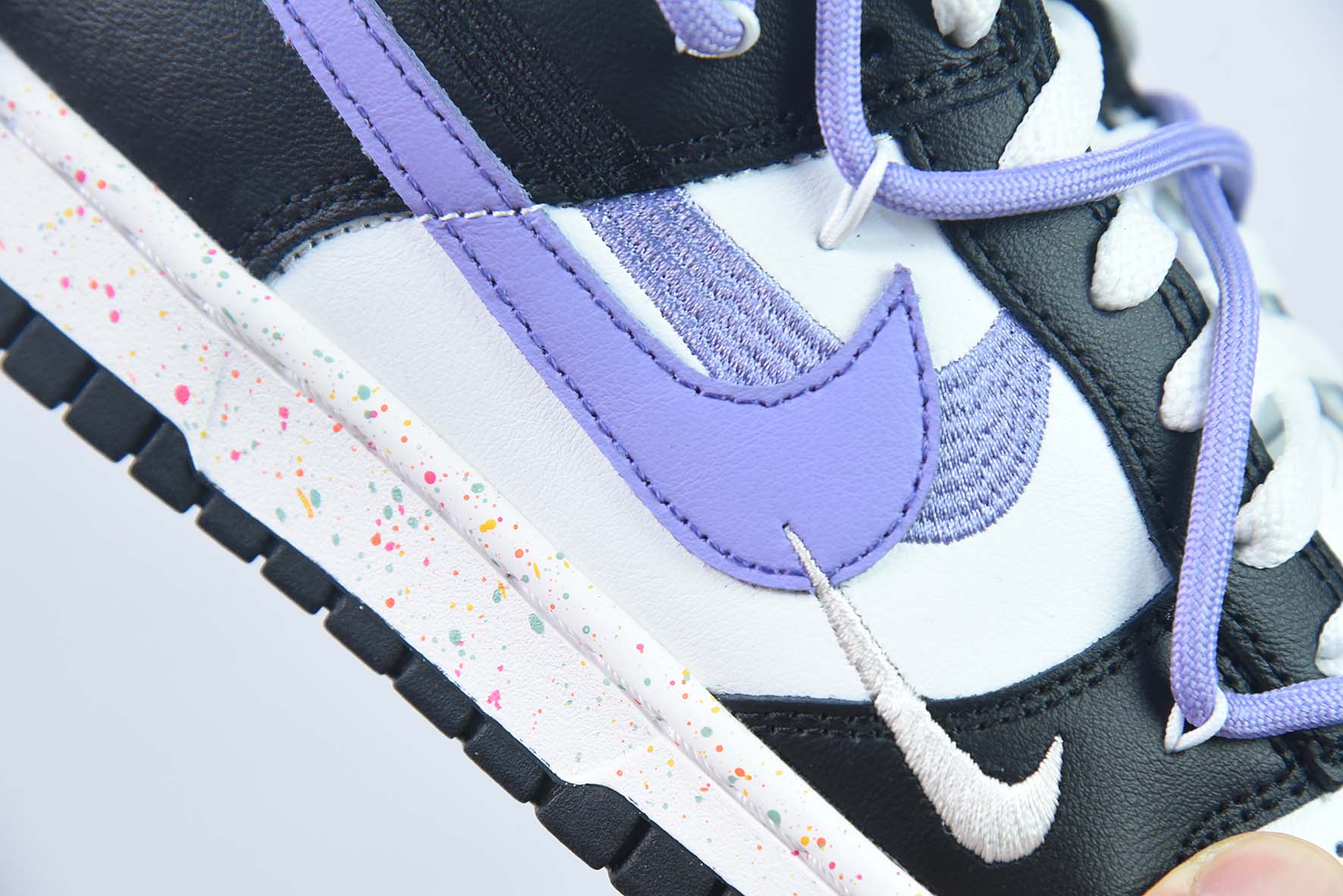 Custom Nike Dunk Low ‘Multiple Swooshes’ White/Black-Purple for sale, Custom Nike Dunk Low ‘Multiple Swooshes’ White/Black-Purple