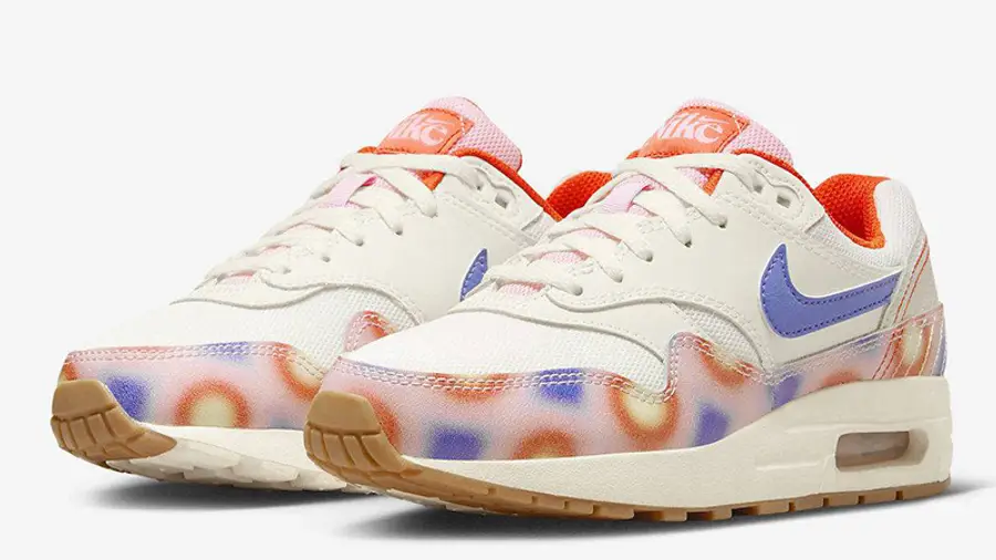 This PS (preschool) Air Max 1 colourway exudes a playful demeanour, clad in a beige base and a pastel pink mudguard covered in orange and blue polka dot motifs inspired by the ‘70s. Meanwhile, the heel section flaunts an embroidered blue Nike Air branding surrounded by multiple stitching that produces a radiating pattern. Blue Swooshes design the sides, while the orange Nike label on the tongue displays a retro font. In the orange-coloured interior, you can find a message that reads: “Everything you need is already inside.”, an inspiring message that fulfils the namesake colourway. The sail white PU foam midsole houses the visible Nike Air unit for ample cushioning. Meanwhile, the gum rubber sole completes this kids’ AM1 colourway.