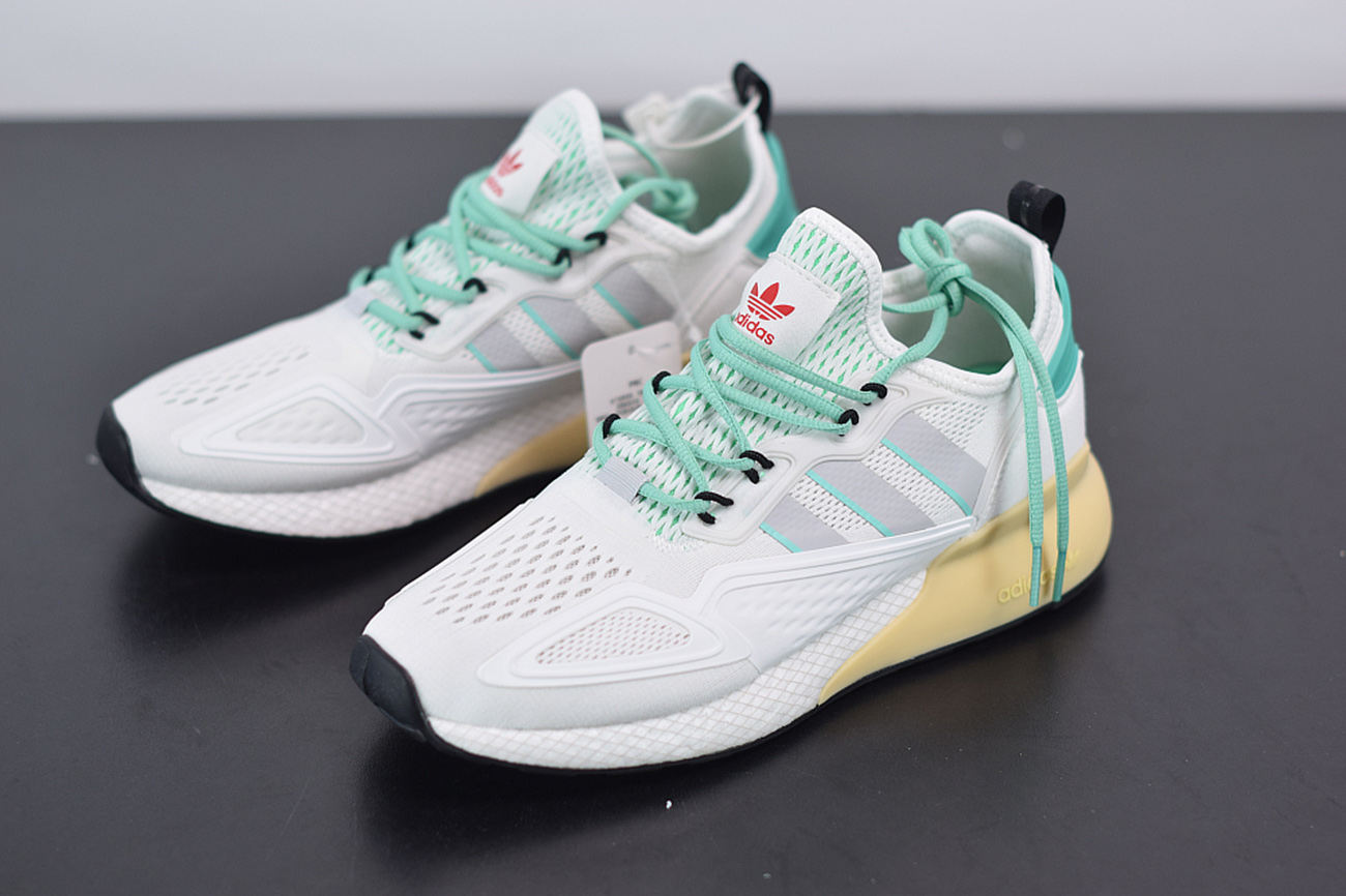 adidas ZX 2K Boost Crystal White/Grey One/Hi-Res Green for sale