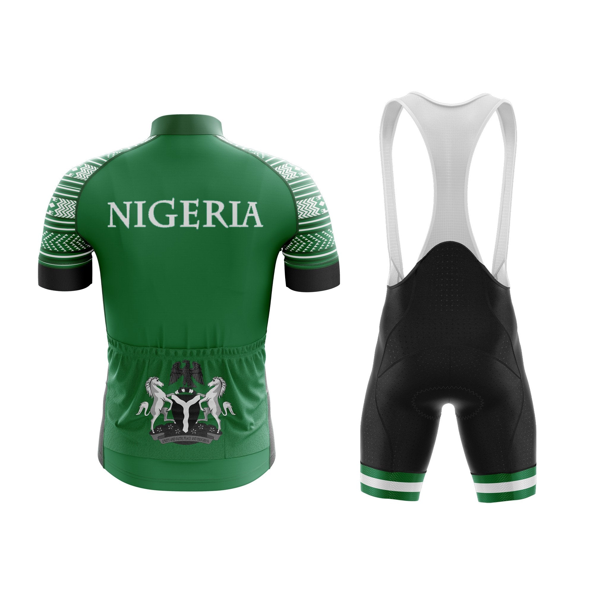 Introducing the Nigeria Emblem Cycling Kit, a stunning fusion of tradition and performance. This cycling ensemble is designed to make you stand out on the road while ensuring maximum comfort and style.