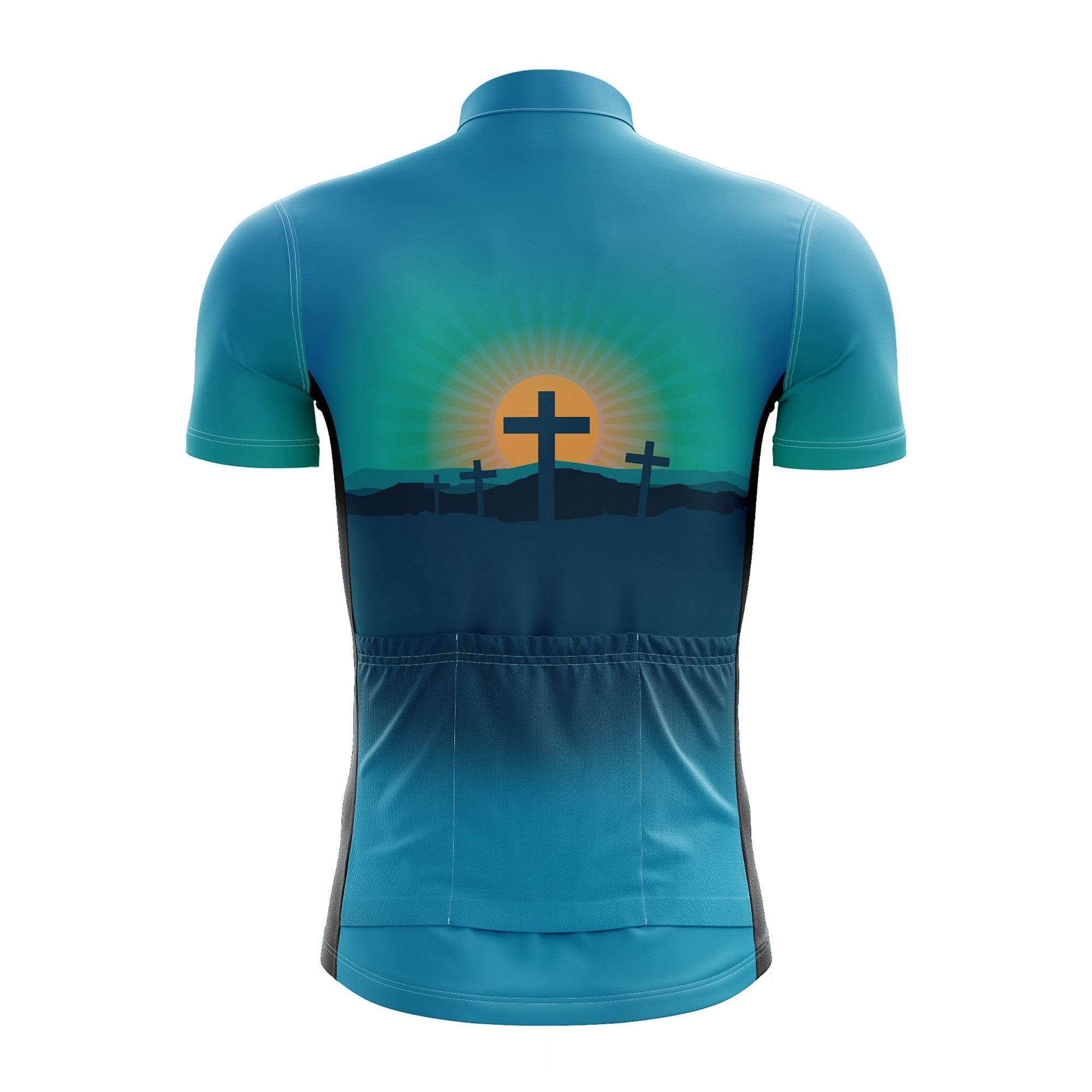 Easter Cycling Jersey - Crosses/Sunrise/Teal for sale, Easter Cycling Jersey - Crosses/Sunrise/Teal