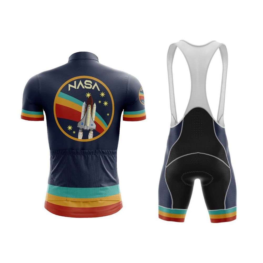 Introducing the Vibrant NASA Cycling Kit, a stunning fusion of retro NASA aesthetics and modern cycling gear. This kit is not just functional; it's a statement piece that will turn heads on the road or trail.