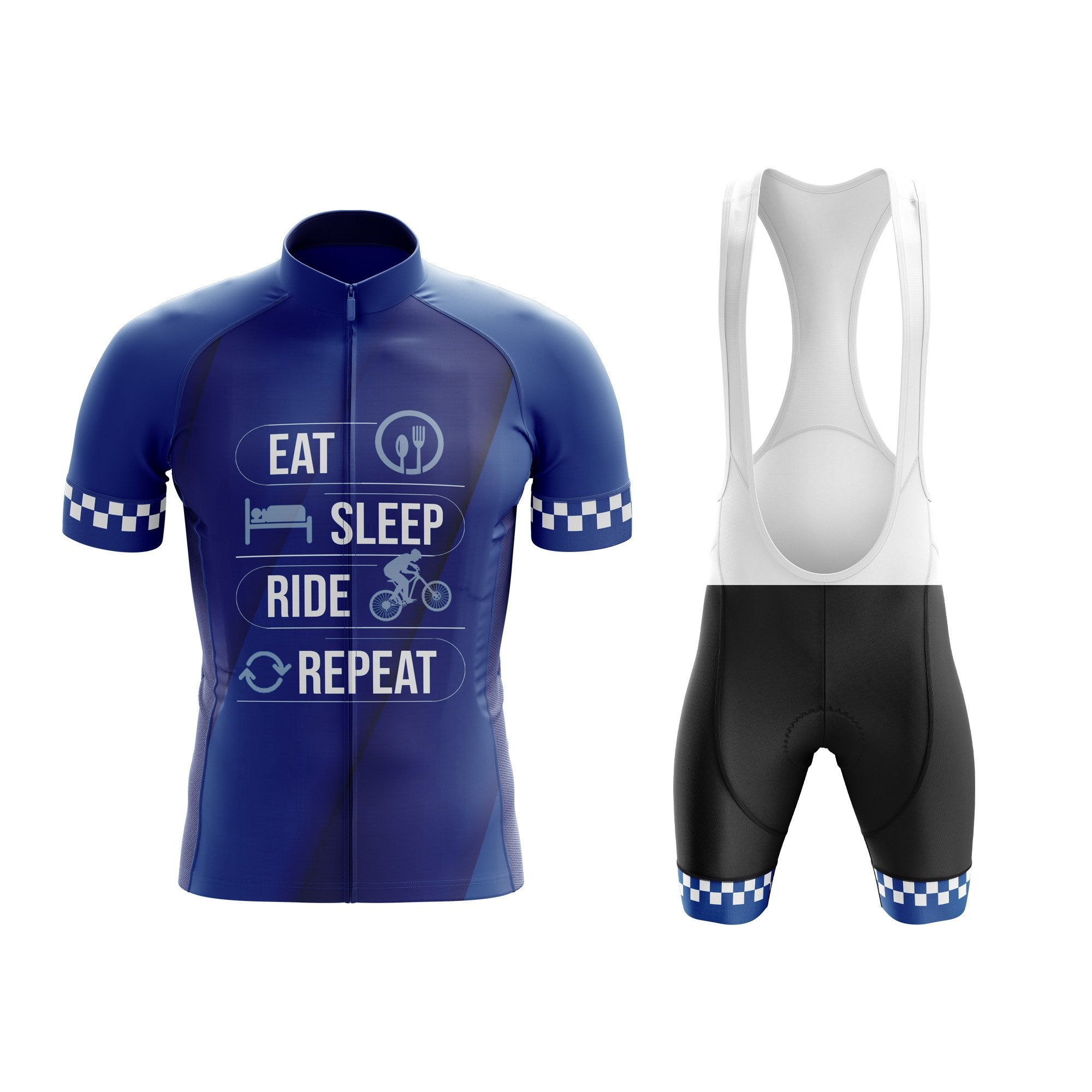 Eat, Sleep, Ride, Repeat Cycling Kit (Men's) Blue/White/Black for sale