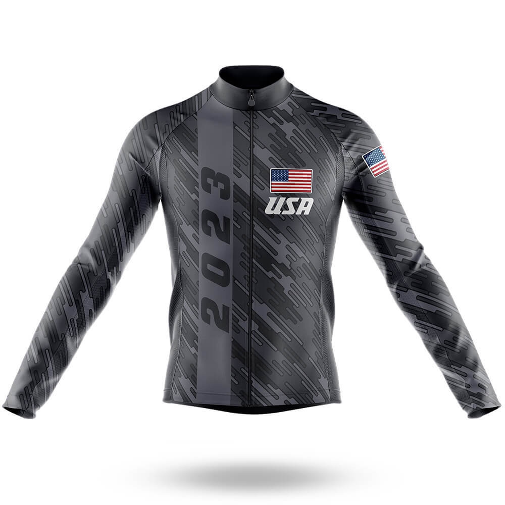 USA 2023 Long Sleeve Cycling Jersey USA Flag Black/Gray/Silver for sale