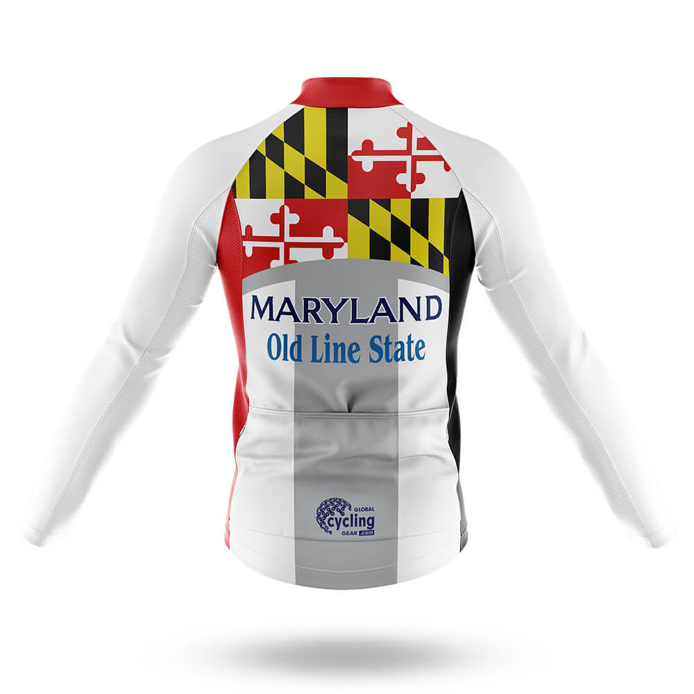 The unique design elements include a prominent "Maryland" text in navy blue across the chest, accompanied by the phrase "Old Line State," paying homage to the state's rich history. The American flag motif subtly woven into the pattern adds an element of patriotism, making this kit not just functional but also a symbol of pride.