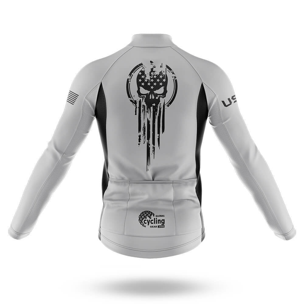 USA Flag Skull Long Sleeve Cycling Jersey White/Black/Grey for sale
