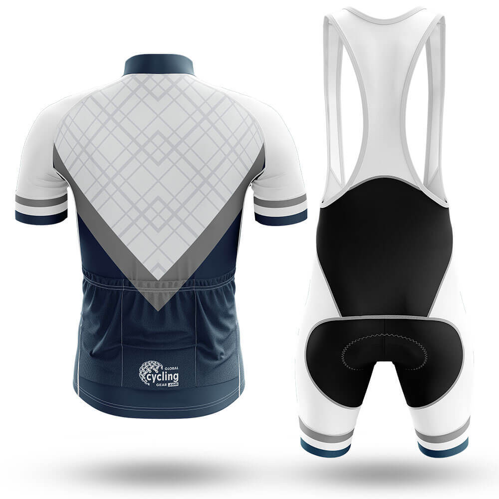 The jersey's design is both functional and stylish. The front features a bold geometric pattern in shades of white and gray, adding a touch of modern sophistication to your cycling gear. This intricate design not only looks great but also helps with air circulation, keeping you cool and dry on even the hottest days. The high-quality zipper closure provides easy access while ensuring a snug fit.