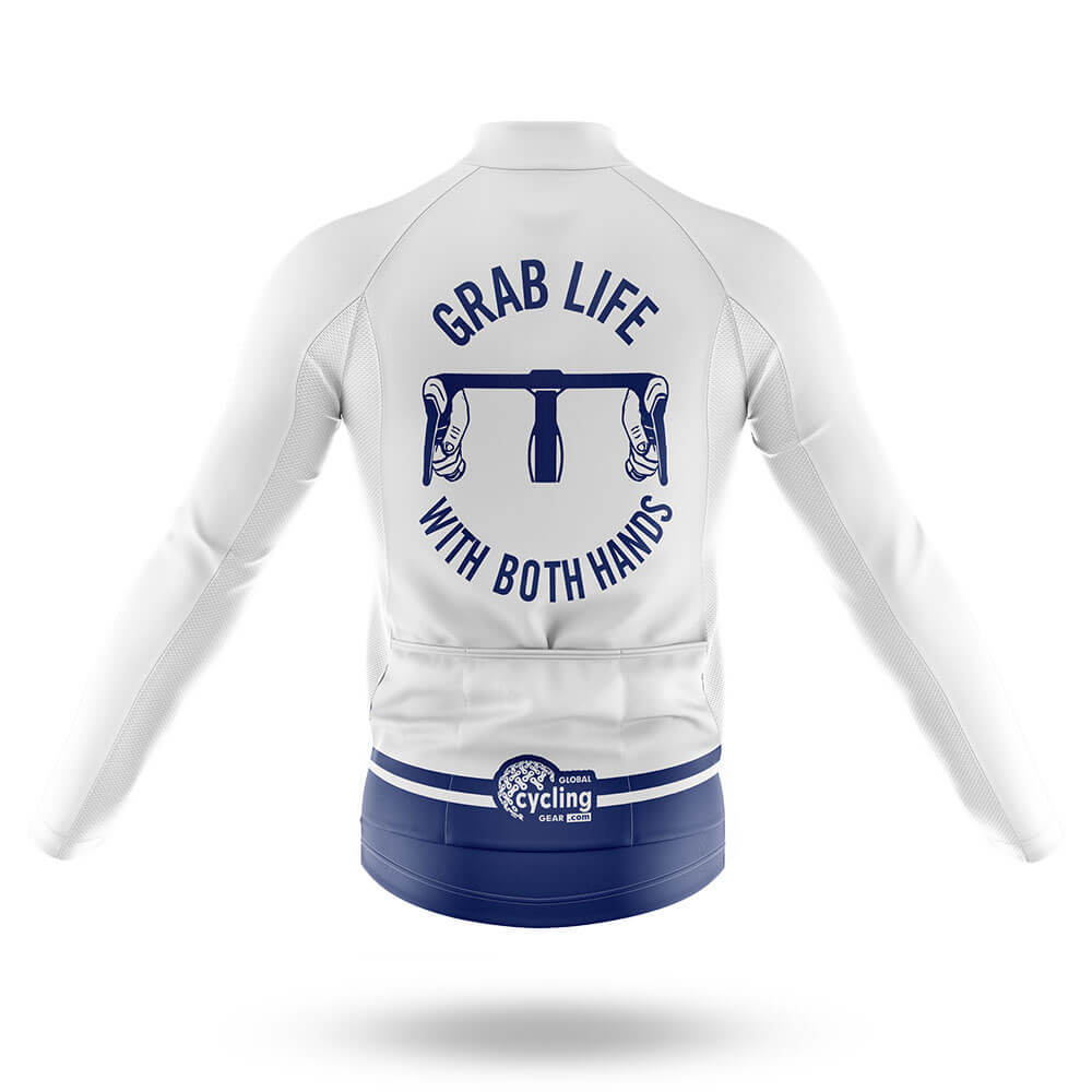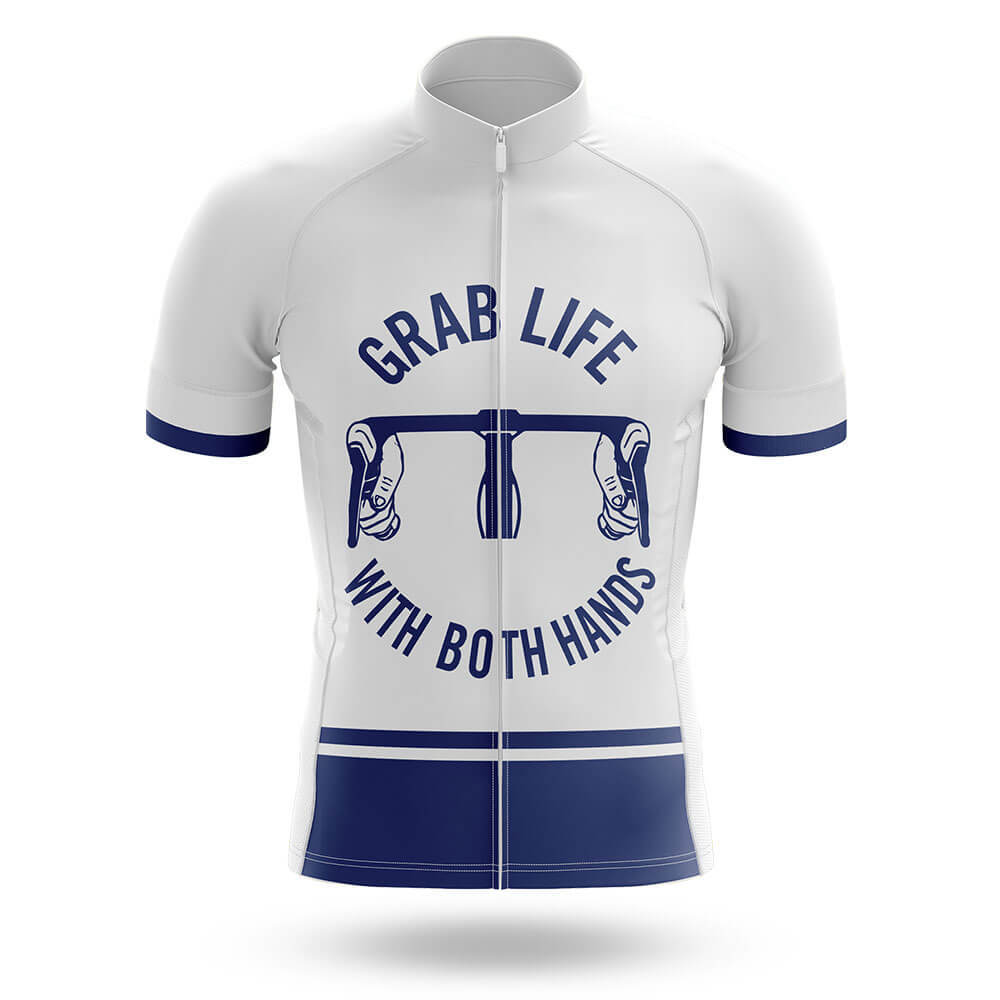 Grab Life Cycling Jersey Motivational White/Dark Blue/Red for sale