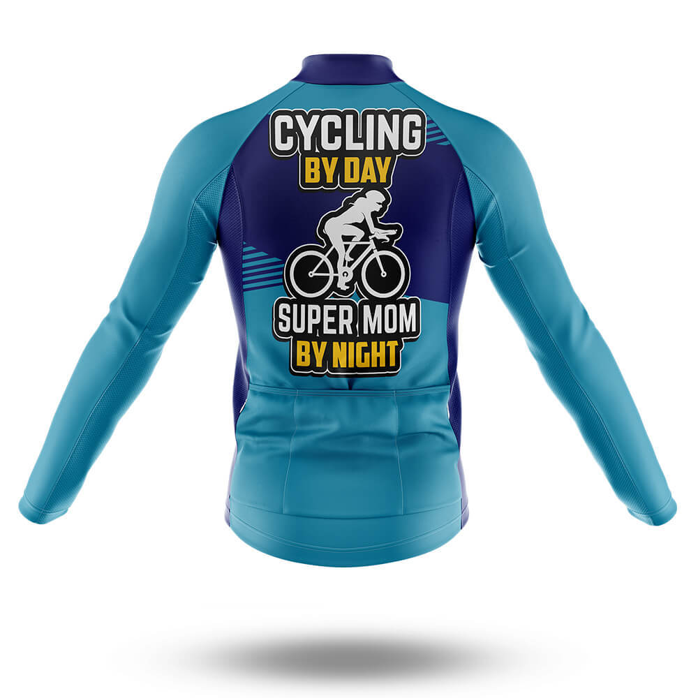 Super Mom By Night Long Sleeve Cycling Jersey Blue/Navy/Grey for sale
