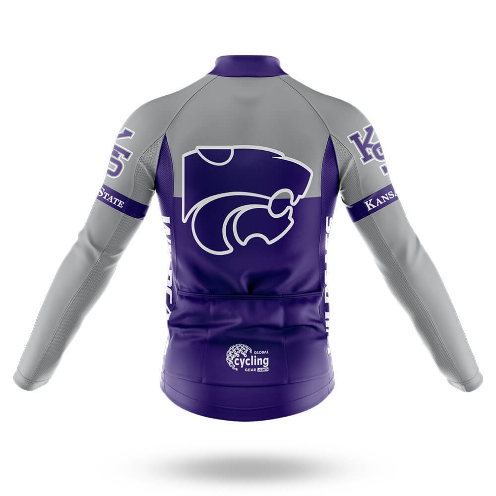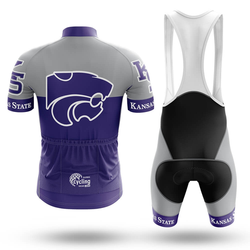 A standout feature of these bibs is the vibrant purple "KS" logo prominently displayed on both sides, accompanied by the word "STATE" beneath it. This design element adds a touch of school spirit, making you stand out among other cyclists. The purple accents around the hem further enhance this look, adding a pop of color that's sure to catch the eye.